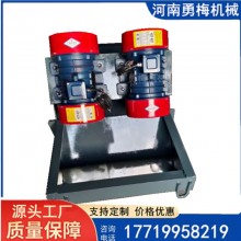 料倉出料機 吊掛式振動給料機利用特制的振動電機或兩臺電動機帶動激振器驅動給料槽沿傾斜方向作周期直線往復振動。當給料槽振動的加速度垂直分量大于重力加速度時,槽中的料被拋起,并按照拋物線的軌跡向前跳躍運動,由于激振源的連續激振,給料槽連續振動,槽中的物料連續向前跳躍,以達到給料的目的。